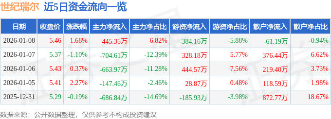 1月8日的资金流向数据方面,主力资金净流入445.35万元,占总成交额6.82%,游资资金净流出384.16万元,占总成交额5.88%,散户资金净流出61.19万元,占总成交额0.94%。