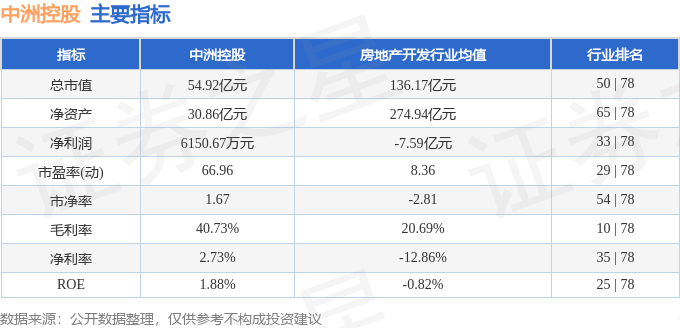 中洲控股2025年三季报显示,前三季度公司主营收入20.47亿元,同比下降47.0%;归母净利润6150.67万元,同比上升111.86%;扣非净利润3371.13万元,同比上升107.83%;其中2025年第三季度,公司单季度主营收入3.7亿元,同比下降75.66%;单季度归母净利润-1.28亿元,同比下降24.13%;单季度扣非净利润-8071.74万元,同比下降21.93%;负债率91.07%,投资收益2.41亿元,财务费用2.89亿元,毛利率40.73%。中洲控股(000042)主营业务:业务涵盖地产开发、酒店经营、物业服务、商业管理等领域。