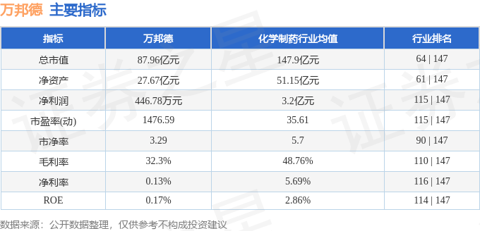 该股主要指标及行业内排名如下:
