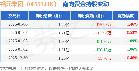 证券之星消息,1月8日南向资金增持175.95万股裕元集团(00551.HK)。近5个交易日中,获南向资金增持的有3天,累计净增持33.74万股。近20个交易日中,获南向资金增持的有12天,累计净增持2308.46万股。截至目前,南向资金持有裕元集团(00551.HK)1.22亿股,占公司已发行普通股的7.61%。