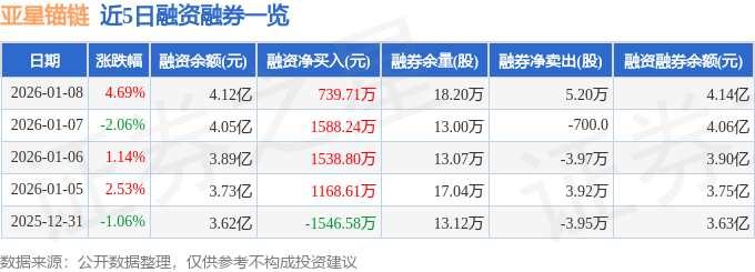 亚星锚链融资融券信息显示,融资方面,当日融资买入9395.92万元,融资偿还8656.21万元,融资净买入739.71万元,连续3日净买入累计3866.74万元。融券方面,融券卖出5.25万股,融券偿还500.0股,融券余量18.2万股,融券余额199.11万元。融资融券余额4.14亿元。