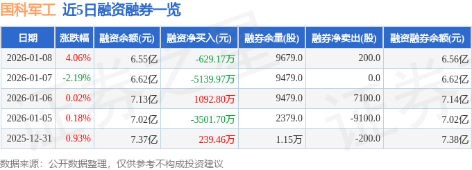 国科军工融资融券信息显示,融资方面,当日融资买入1.3亿元,融资偿还1.36亿元,融资净偿还629.17万元。融券方面,融券卖出400.0股,融券偿还200.0股,融券余量9679.0股,融券余额61.27万元。融资融券余额6.56亿元。