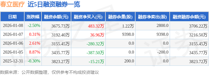 春立医疗融资融券信息显示,融资方面,当日融资买入791.0万元,融资偿还307.68万元,融资净买入483.32万元。融券方面,融券卖出2800.0股,融券偿还0.0股,融券余量1.22万股,融券余额30.5万元。融资融券余额3706.22万元。