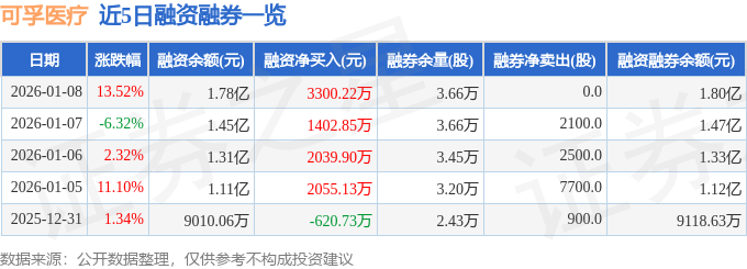 证券之星消息,截至2026年1月8日收盘,可孚医疗(301087)报收于54.0元,上涨13.52%,换手率8.98%,成交量17.43万手,成交额9.28亿元。