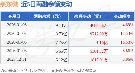 证券之星消息,1月8日,燕东微(688172)融资买入1.65亿元,融资偿还1.25亿元,融资净买入4085.78万元,融资余额9.07亿元,近3个交易日已连续净买入累计2.47亿元,近20个交易日中有15个交易日出现融资净买入。
