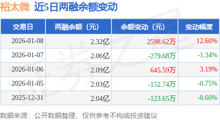 证券之星消息,1月8日,裕太微(688515)融资买入4999.13万元,融资偿还2388.77万元,融资净买入2610.36万元,融资余额2.31亿元,近20个交易日中有12个交易日出现融资净买入。