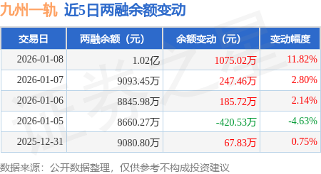 证券之星消息,1月8日,九州一轨(688485)融资买入1692.39万元,融资偿还617.38万元,融资净买入1075.02万元,融资余额1.02亿元,近3个交易日已连续净买入累计1508.2万元,近20个交易日中有12个交易日出现融资净买入。