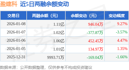 证券之星消息,1月8日,盈建科(300935)融资买入1546.18万元,融资偿还600.14万元,融资净买入946.04万元,融资余额1.11亿元,近20个交易日中有11个交易日出现融资净买入。