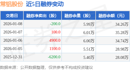证券之星消息,1月8日,常铝股份(002160)融资买入5492.25万元,融资偿还4755.78万元,融资净买入736.47万元,融资余额2.44亿元,近3个交易日已连续净买入累计3436.45万元。