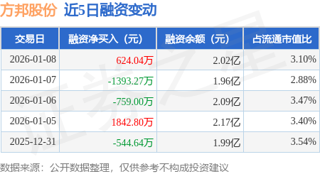 证券之星消息,1月8日,方邦股份(688020)融资买入3309.9万元,融资偿还2685.87万元,融资净买入624.04万元,融资余额2.02亿元。