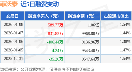 证券之星消息,1月8日,菲沃泰(688371)融资买入1697.17万元,融资偿还1107.4万元,融资净买入589.77万元,融资余额1.06亿元。