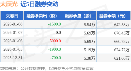 证券之星消息,1月8日,太辰光(300570)融资买入2.15亿元,融资偿还2.12亿元,融资净买入279.14万元,融资余额13.83亿元,近20个交易日中有12个交易日出现融资净买入。