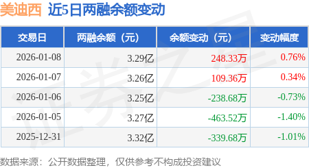 证券之星消息,1月8日,美迪西(688202)融资买入3332.24万元,融资偿还3108.34万元,融资净买入223.9万元,融资余额3.28亿元。