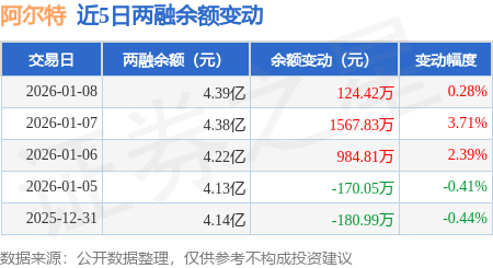 证券之星消息,1月8日,阿尔特(300825)融资买入3160.57万元,融资偿还3035.21万元,融资净买入125.36万元,融资余额4.39亿元,近3个交易日已连续净买入累计2673.47万元。