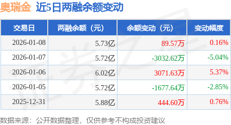 证券之星消息,1月8日,奥瑞金(002701)融资买入4322.2万元,融资偿还4227.79万元,融资净买入94.4万元,融资余额5.7亿元。