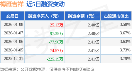 证券之星消息,1月8日,梅雁吉祥(600868)融资买入2153.24万元,融资偿还2128.12万元,融资净买入25.13万元,融资余额2.4亿元。