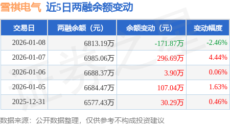 证券之星消息,1月8日,雪祺电气(001387)融资买入634.72万元,融资偿还806.9万元,融资净卖出172.18万元,融资余额6795.2万元。