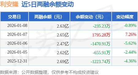 证券之星消息,1月8日,利安隆(300596)融资买入2192.31万元,融资偿还2417.1万元,融资净卖出224.8万元,融资余额2.63亿元。