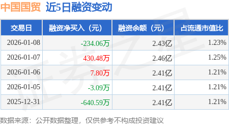 证券之星消息,1月8日,中国国贸(600007)融资买入105.24万元,融资偿还339.3万元,融资净卖出234.06万元,融资余额2.43亿元。