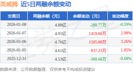 证券之星消息,1月8日,英威腾(002334)融资买入3029.03万元,融资偿还3318.0万元,融资净卖出288.97万元,融资余额4.88亿元,近20个交易日中有11个交易日出现融资净买入。