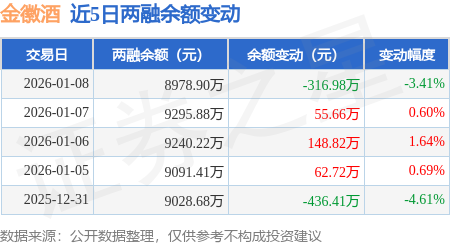 证券之星消息,1月8日,金徽酒(603919)融资买入474.21万元,融资偿还786.79万元,融资净卖出312.58万元,融资余额8715.13万元,近20个交易日中有13个交易日出现融资净买入。