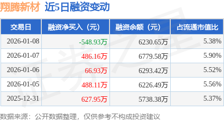 证券之星消息,1月8日,翔腾新材(001373)融资买入789.44万元,融资偿还1338.37万元,融资净卖出548.93万元,融资余额6230.65万元,近20个交易日中有13个交易日出现融资净买入。