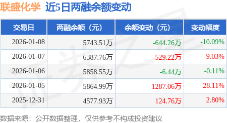 证券之星消息,1月8日,联盛化学(301212)融资买入459.43万元,融资偿还1103.36万元,融资净卖出643.93万元,融资余额5710.65万元。