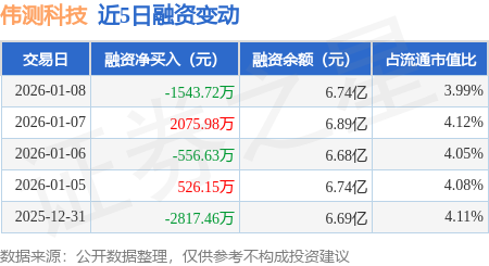 证券之星消息,1月8日,伟测科技(688372)融资买入6755.21万元,融资偿还8298.93万元,融资净卖出1543.72万元,融资余额6.74亿元。