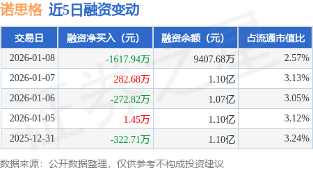 证券之星消息,1月8日,诺思格(301333)融资买入1411.25万元,融资偿还3029.2万元,融资净卖出1617.94万元,融资余额9407.68万元,近20个交易日中有11个交易日出现融资净买入。