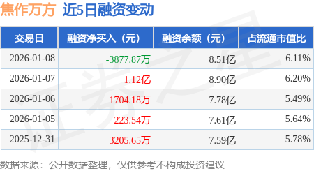 证券之星消息,1月8日,焦作万方(000612)融资买入1.28亿元,融资偿还1.67亿元,融资净卖出3877.87万元,融资余额8.51亿元。