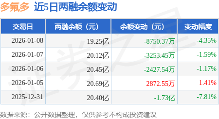 证券之星消息,1月8日,多氟多(002407)融资买入3.21亿元,融资偿还4.08亿元,融资净卖出8707.52万元,融资余额19.19亿元。