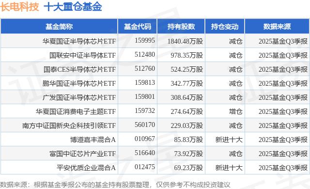 重仓长电科技的前十大公募基金请见下表: