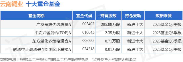 重仓云南铜业的公募基金请见下表: