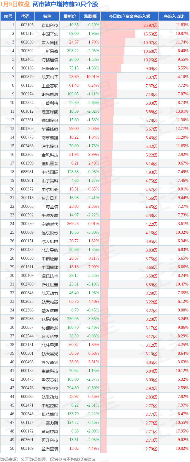 两市散户增持最多的前十只个股为: