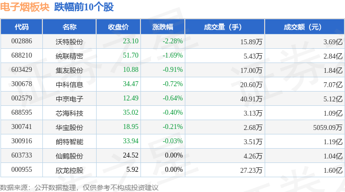 从资金流向上来看,当日电子烟板块主力资金净流出5.97亿元,游资资金净流出4.73亿元,散户资金净流入10.69亿元。电子烟板块个股资金流向见下表: