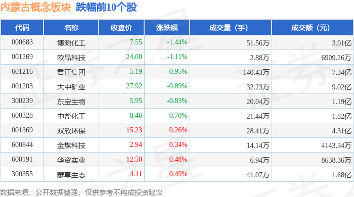 从资金流向上来看,当日内蒙古概念板块主力资金净流入6.4亿元,游资资金净流出8.14亿元,散户资金净流入1.74亿元。内蒙古概念板块个股资金流向见下表: