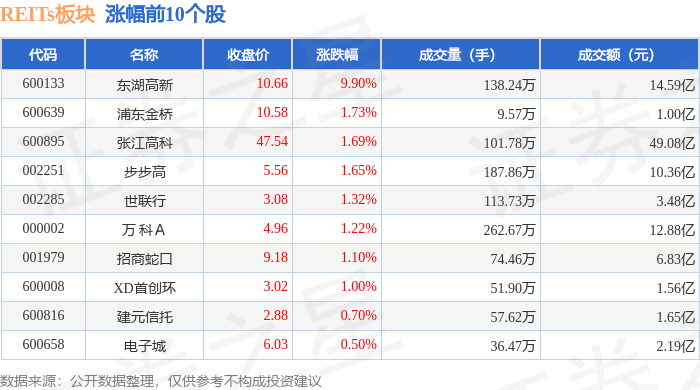 证券之星消息,1月9日REITs板块较上一交易日上涨0.87%,东湖高新领涨。当日上证指数报收于4120.43,上涨0.92%。深证成指报收于14120.15,上涨1.15%。REITs板块个股涨跌见下表: