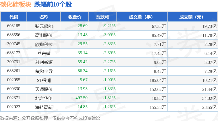 从资金流向上来看,当日碳化硅板块主力资金净流出6.73亿元,游资资金净流入770.49万元,散户资金净流入6.65亿元。碳化硅板块个股资金流向见下表: