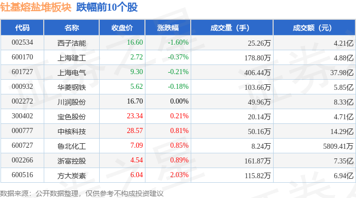 从资金流向上来看,当日钍基熔盐堆板块主力资金净流入2.72亿元,游资资金净流出4.56亿元,散户资金净流入1.84亿元。钍基熔盐堆板块个股资金流向见下表: