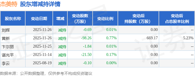 该股近半年内有股东持股变动,合计净减持122.39万股,股东增减持明细如下表:
