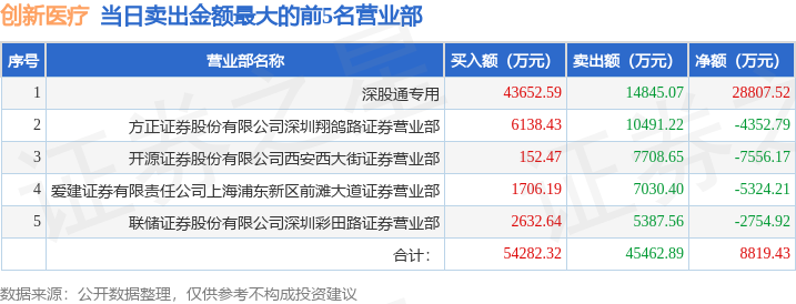 证券之星消息,沪深交易所2026年1月9日公布的交易公开信息显示,创新医疗(002173)因日涨幅偏离值达到7%的前5只证券,日换手率达到20%的前5只证券登上龙虎榜。此次是近5个交易日内第2次上榜。