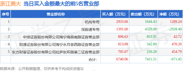 证券小知识:龙虎榜是交易所披露的竞价交易公开信息,现身龙虎榜的个股都是当日最为活跃的个股,是投资者日常重点关注的数据。交易所公布当日买入金额和卖出金额前五名的席位,其中一些席位代表特殊意义,如机构专用席位是指基金专用席位、券商自营专用席位、社保专用席位、券商理财专用席位、保险机构专用席位、保险机构租用席位、QFII专用席位等机构投资者买卖证券的专用通道和席位。深股通专用、沪股通专用为北向资金的交易席位。从龙虎榜数据可以发现和研究机构、游资和散户的资金动向。一些营业部席位经常上榜,市场知名度较高,投资者整理代表散户、游资、量化等不同资金的营业部席位。