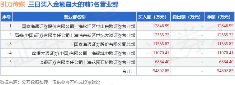 证券之星消息,沪深交易所2026年1月9日公布的交易公开信息显示,引力传媒(603598)因非ST、*ST和S证券连续三个交易日内收盘价格涨幅偏离值累计达到20%的证券登上龙虎榜。此次是近5个交易日内第4次上榜。