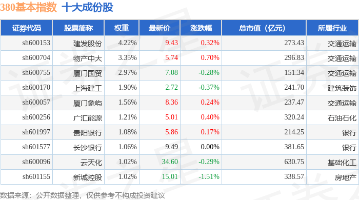 证券之星消息,1月9日,380基本(000128)指数报收于9456.15点,涨1.08%,成交3176.72亿元,换手率2.14%。当日该指数成份股中,上涨的有292家,华秦科技以18.92%的涨幅领涨,下跌的有81家,芯源微以6.91%的跌幅领跌。