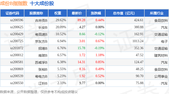 成份B指(399003)指数十大成份股详情如下: