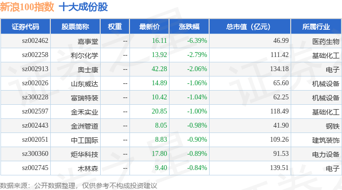 新浪100(399297)指数十大成份股详情如下:
