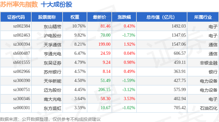 苏州率先(399410)指数十大成份股详情如下: