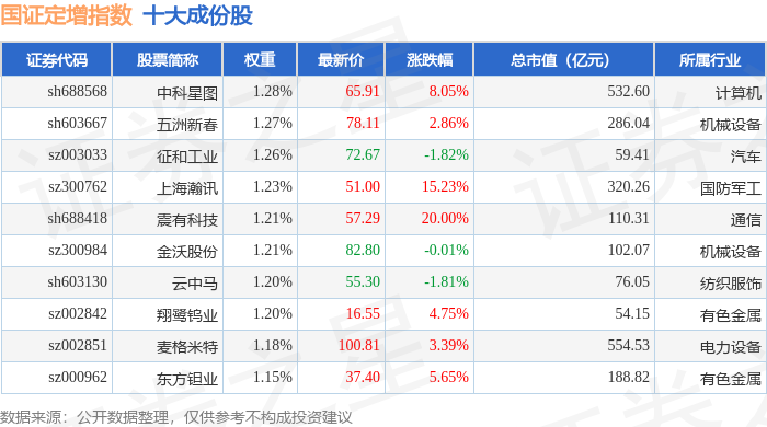 证券之星消息,1月9日,国证定增(399428)指数报收于4570.09点,涨2.04%,成交985.71亿元,换手率4.87%。当日该指数成份股中,上涨的有66家,震有科技以20.0%的涨幅领涨,下跌的有31家,丰立智能以4.98%的跌幅领跌。