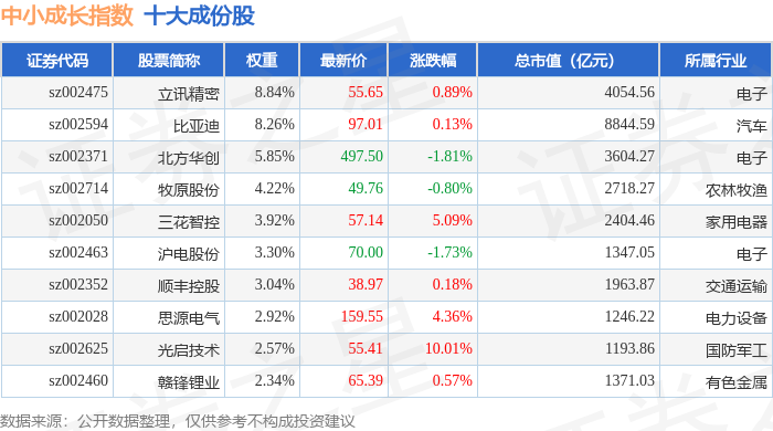 中小成长(399602)指数十大成份股详情如下: