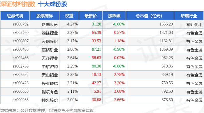 深证材料(399614)指数十大成份股详情如下: